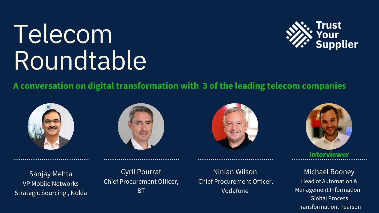 Insights from the Innovators…Cyril Pourrat, Sanjay Mehta and Ninian Wilson discuss how they are bringing digital transformation to BT, Nokia, Vodafone, and the telecom industry with Trust Your Supplier. Hear what you should be thinking about as you embark on the path to transforming your organization and your industry.