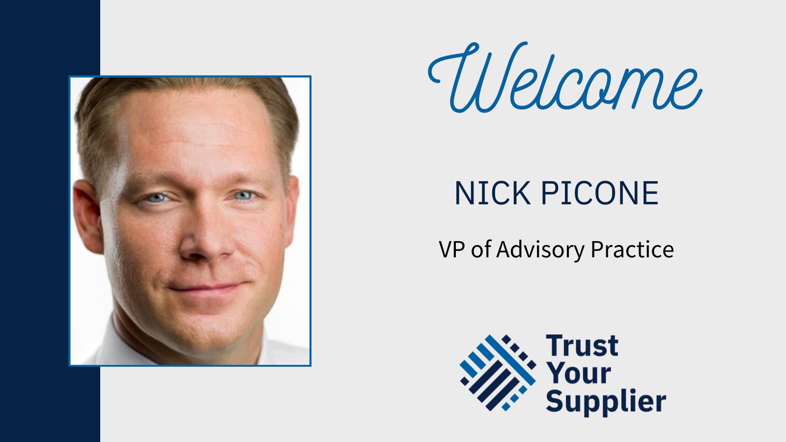 We are excited to welcome Nick Picone to the Trust Your Supplier team! Nick joins us as the Vice President of Advisory Practice and is responsible for worldwide sales execution and advisory practice strategy.